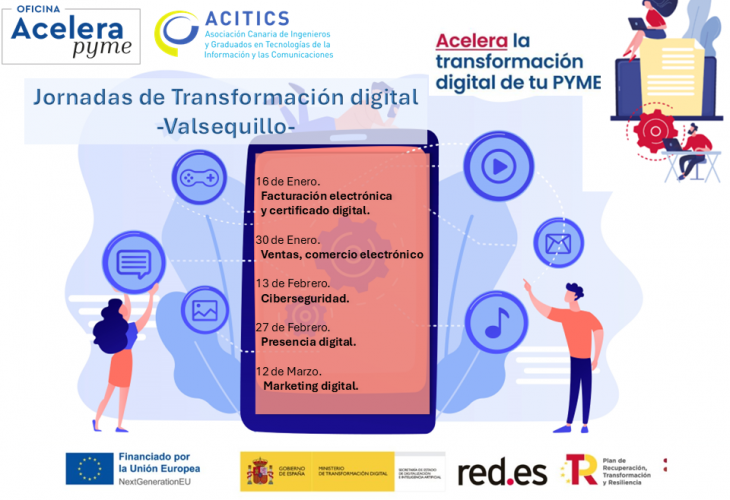 Las jornadas sobre innovación tecnológica y transformación digital que organiza la OTDR de la ACITICS en colaboración con la Asociación el Tajinaste Azul, están dirigidas a pymes y autónomos profesionales de los entornos rurales de la isla de Gran Canaria. El ciclo de jornadas, que se celebrará durante los meses de enero, febrero y marzo de 2023, abordará temas como la facturación electrónica y el certificado digital, las ventas y el comercio electrónico, la ciberseguridad, la presencia digital y el marketing digital.