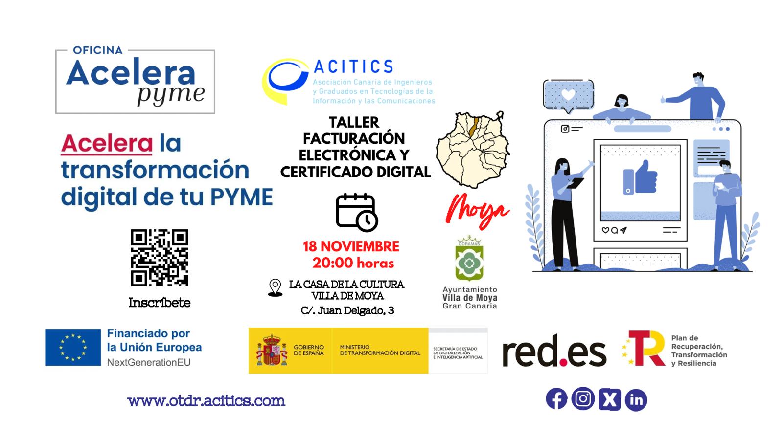 La OTDR de la ACITICS ha cerrado un acuerdo con el Ayuntamiento del Municipio de Moya para la realización de varias jornadas sobre transformación digital. A continuación se detallan las fechas, tipo de taller y ponente.